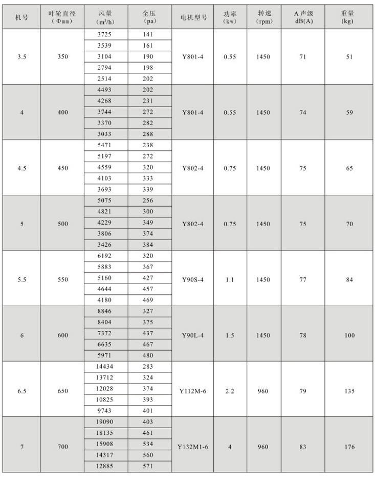 ??5、效率高:本系列风机采用先进的CAD软件经多目标优化设计研制开发的新产品,经实测表明风机效率大于80%,部分大机号大于85%,并具有效率曲线平坦的特点,有利于节能。